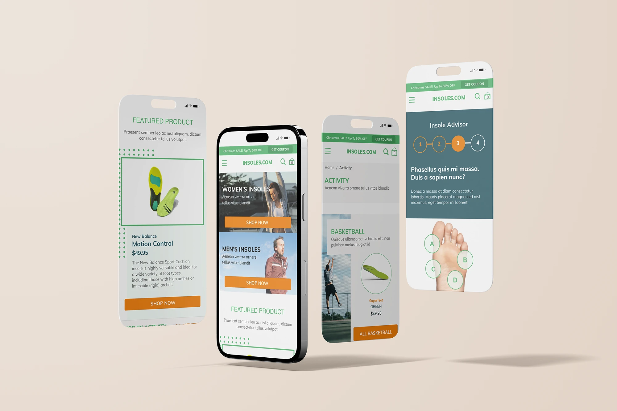 I partnered with Insoles.com, a Minnesota-based retailer, to completely redesign their online store with a focus on enhancing the user experience and modernizing the visual appeal. My work began with detailed wireframing to map out the customer journey, followed by the creation of a cohesive design system in Figma to ensure scalability and consistency. I applied this system across all critical areas of the responsive site—including the homepage, main section pages, search results, the product detail page, and the entire checkout flow. A key feature I designed was a custom diagnostic tool to help users easily find the perfect insole for their specific needs, ensuring a tailored experience across desktop, tablet, and mobile devices.